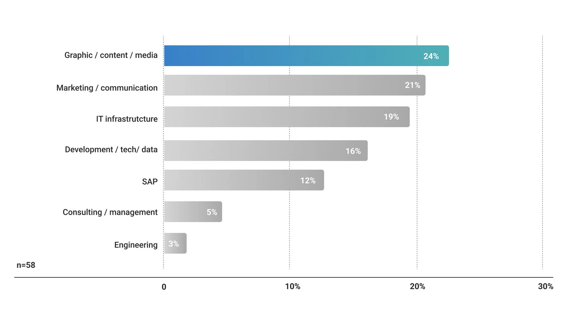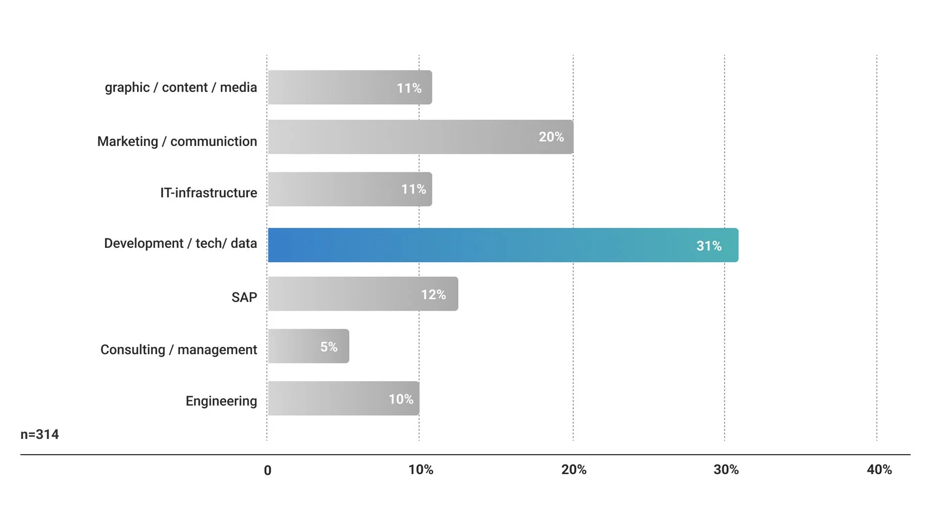 What do employers say? The survey also included 184 project providers. Of these, 63 per cent also believe that freelancers will not be replaced. They expect substitution to be most likely in graphic, content and media (24 per cent) and IT infrastructure (21 per cent) roles.